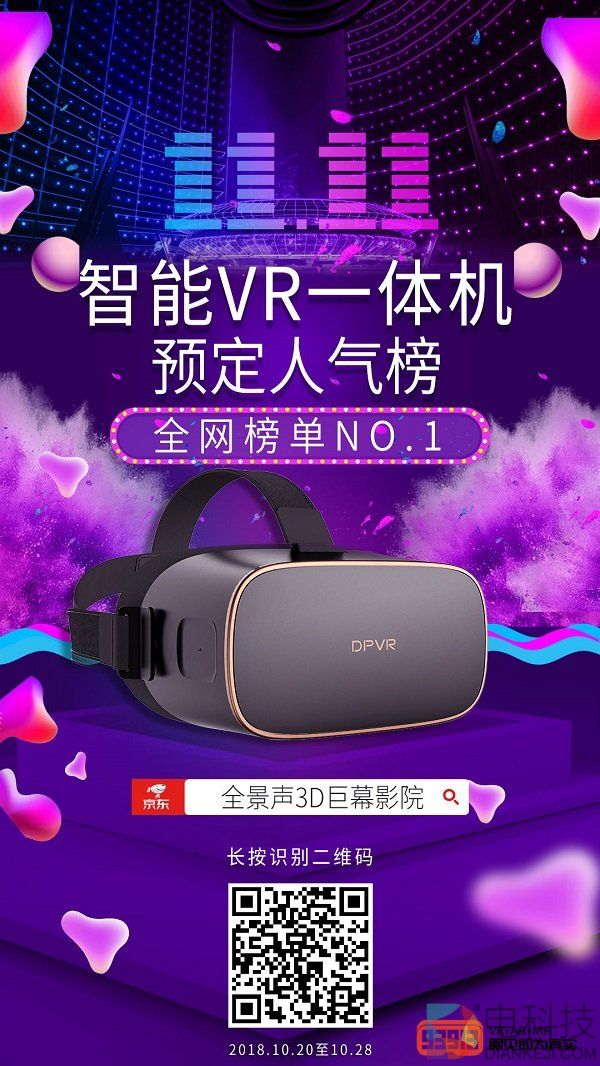 本次11.11天猫全球狂欢节预售期间,截至10月29日,大朋VR全景声3D巨幕影院P1登顶天猫11.11智能VR一体机预订人气榜冠军。
