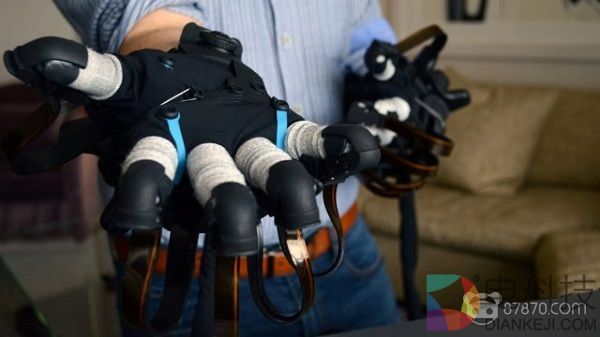 开发套件中包括两个手套,每个手套配备约130个传感器,可在手和指尖上提供逼真的触觉反馈。