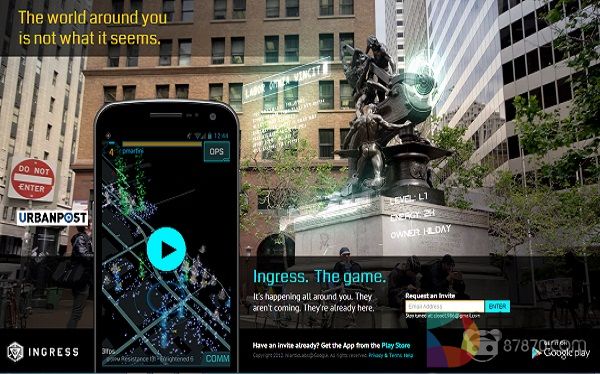 《Ingress》于2012年11月进行首次封测,2013年正式推出。这款游戏可以让玩家进入一个“真实”的虚拟世界,并分成两大阵营:“反抗军(蓝军)”和“启蒙军(绿军)”,玩家们通过获取一种名为XM(Exotic Matter)的神秘能量,争夺控制真实世界中的地标性建筑(游戏内称为Portal),并展开对攻防战。