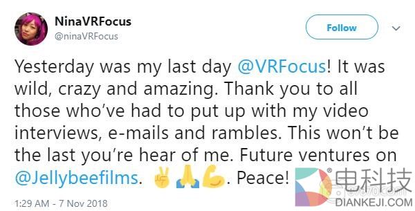 一位熟悉此事的消息人士透露,剩下的工作人员确实已经被解雇,而且在Joyce离职后,VRFocus的母公司InvestVR将不再继续投资该网站。前VRFocus员工Rebecca Hills-Duty在推文中确认了VRFocus即将关闭。