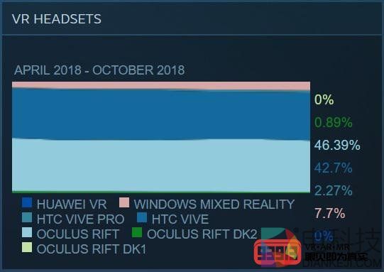 10月Steam硬件调查结果显示HTC Vive Pro和Windows MR销量增长。 在上个月的调查中,Valve开始上市的 HTC Vive Pro在 10月份之后的整体VR头显使用率从2.03%增长到2