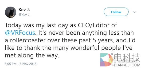 VR网站VRFocus总部位于英国,11月6日,其CEO兼主编Kevin Joyce宣布辞职,并解雇了所有的编辑。(原文)