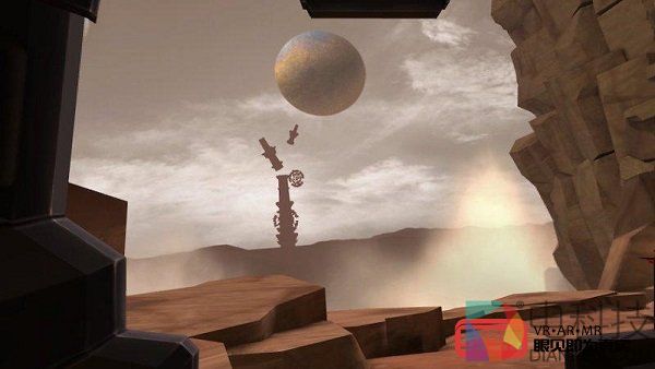 除了探索事实和真相,好的AVG自然会包含一些不错的谜题或机关,考虑到移动VR设备在交互方面的一些局限性,本作的机关并没有设计得过于复杂,好在机关的花样很多,不至于让玩家在解谜过程中感到重复和无聊。还记得最开始我捡到的那个球吗?游戏中很多的机关和谜题都与它有关,只需要用球击中相关的交互点,就能触发机关解开谜题,这种充分利用VR体感交互特性的设计也值得称赞。