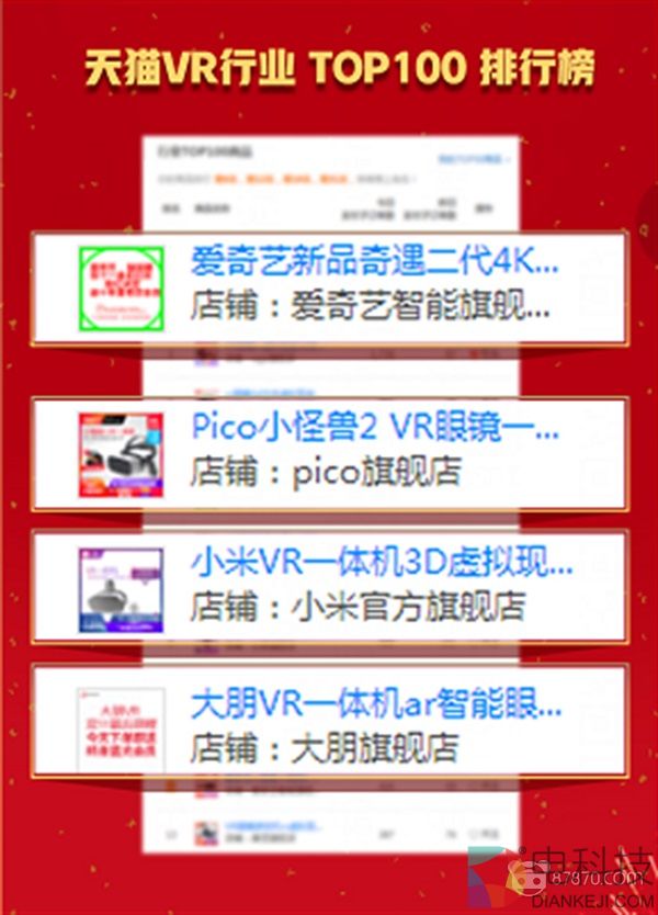 天猫【爱奇艺智能旗舰店】:VR行业四冠王