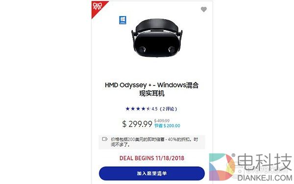 三星官网将于11月18日开启黑五促销活动,其中新款VR头显Odyssey+降至299.99美元(约合人民币2089元),包含控制器。(原文)