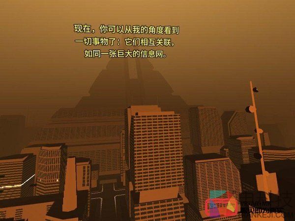 说到这里,本作的游戏类型终于展现出来,原来是一款解谜游戏!主角在游戏中的使命也逐渐变得清晰——找到真相、获得自由。如此精彩的世界观设定和奇特的玩法让本作充满了一部佳作的气质,同时游戏中大量的科幻梗和科技梗也让我大呼过瘾,比如主角要服务的某个VR场景是一座拥有不亚于北京雾霾的未来都市,看到它我马上想到了科幻电影《银翼杀手》。