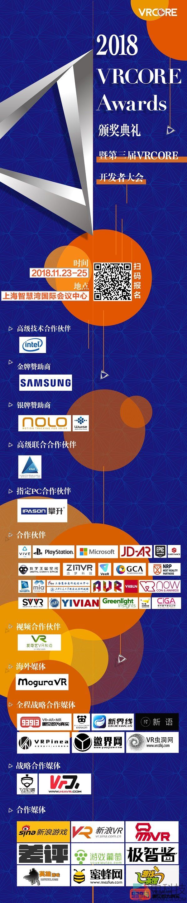 如果你想亲临现场,观看颁奖典礼、参与行业论坛、体验优秀内容,就长按下图二维码或点击阅读原文报名参与2018 VRCORE Awards颁奖典礼系列活动吧!
