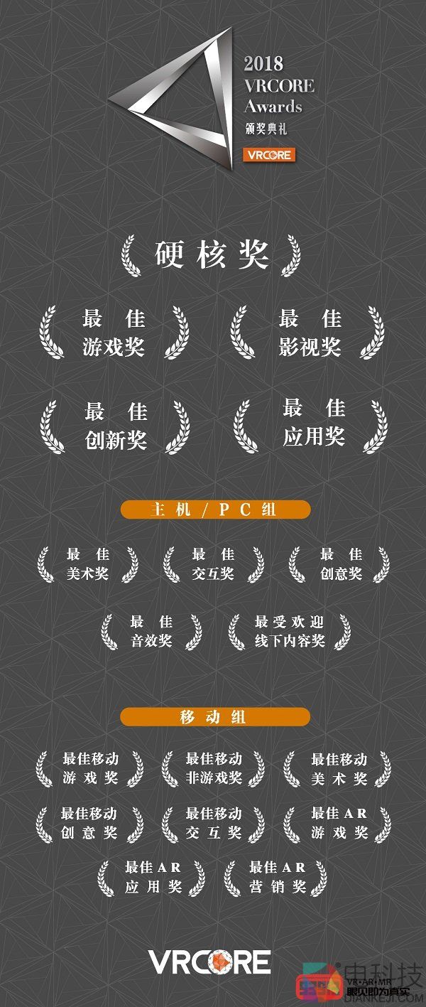本次2018 VRCORE Awards颁奖典礼将会颁出18项VR/AR大奖: