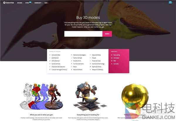 Sketchfab允许用户查看3D模型,并支持用户全方位查看细节。它可以实时审查3D模型的各个方面。从动画、视觉效果到电子游戏、3D打印、VR/AR效果图,用户将有机会查看并购买成千上万的3D模型。