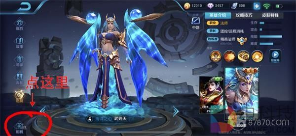 相机隐藏在英雄界面这么一个隐藏的位置(对,就是来秀武则天的!)