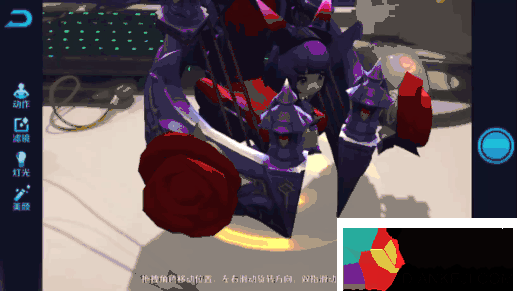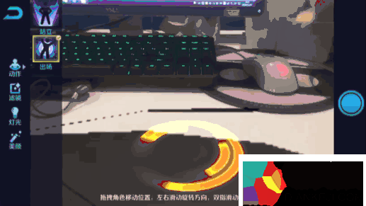 还可以设置动作(只有站立、出场两种)、滤镜、灯光,以及一个很垃圾的美颜功能。