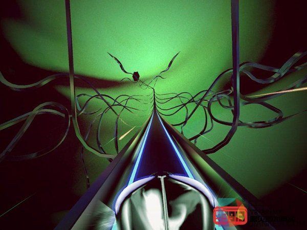 与操作的简单暴力相对应,本作的画面与音乐却一点不简单。玩家一边非常紧张的关注着前方的“路况”,一边又看到异常迷幻的画面,耳边更是传来了深邃幽远的音乐,仿佛这是一次通向异次元的超速驾驶。而每当玩家击中或跨越了不同的障碍,那种强烈的节奏音又提示着玩家,这绝对是一次玩命的旅行,脑海中充满了一种死亡朋克的感觉。