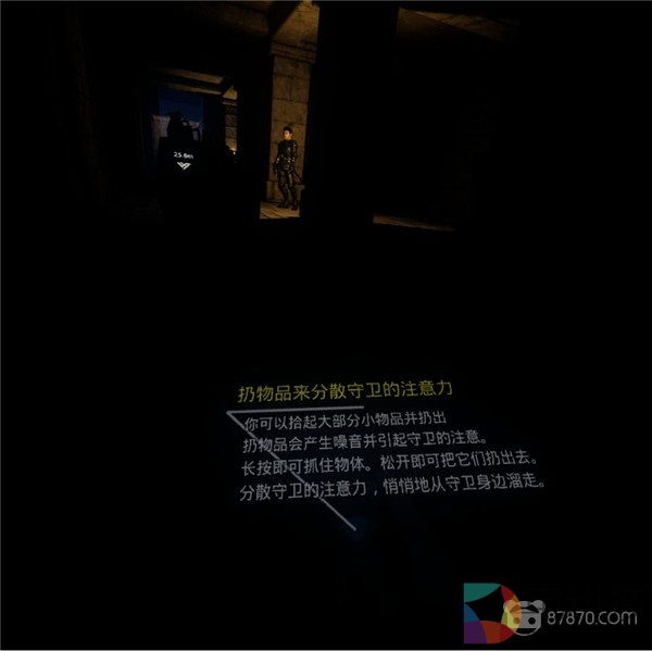 我们可以拿起场景中的瓶瓶罐罐挥手丢向远方,利用杂音吸引守卫前去围观,从而为我们的渗透行动制造空隙;