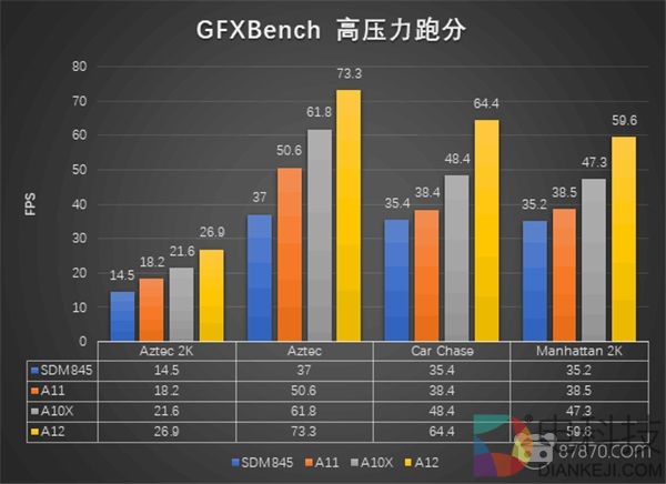 不过在游戏性能上,骁龙855可能并没有那么理想。从跑分的状况来看,无论在高压还是低压状态下,骁龙845都与苹果A12仿生拉开较大的差距,仅仅20%的性能提升明显无法弥补骁龙855与A12之间的差距,仅仅只能追平A11。