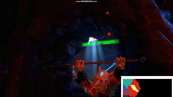 格挡方面,玩家可以用一切能够挡在自己面前的物体抵挡敌人的攻击。比如在某个环节中,87君需要击杀高台上射击的哥布林,为了避免受到伤害,87君在攻击完之后就会迅速躲在眼前的石柱后面。看似简单的设定实际上增强了游戏的灵活性,玩家可以自己选择不同的进攻方式,组合出更多的玩法。