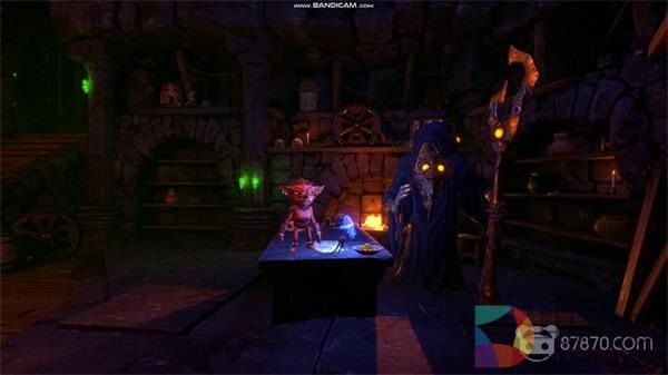除了名字让人想到魔兽之外,设定和画风也颇有魔兽的风格。比如游戏开始之前的房间里,桌子是整块木头做的,拥有非常原始的纹理,这是西方魔幻设定中很常用的形式。此外,桌子上站着的粉色哥布林,用苍老声音讲话的巫师,每一个都体现着“西方魔幻世界”这个设定,的确别有一番风味。