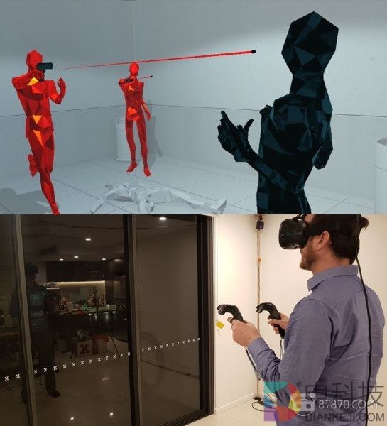 本次官方展示的游戏是《Superhot VR》,这是一款非常流行的第一人称VR射击游戏。其最大的特色就是“可操控的子弹时间”,在游戏中当玩家静止不动的时候,则会进入子弹时间,此时玩家可以看到所有敌人的子弹轨迹,从而决定接下来的行动路线。