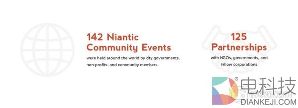 这家位于旧金山的公司声称,2018年全球范围内共举办了142场Niantic社区活动,主办方包括市政府、非盈利机构以及社区成员。Niantic与非盈利机构、政府以及其他公司共达成了125项伙伴关系。
