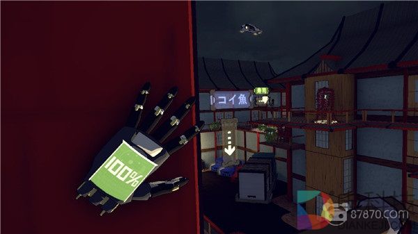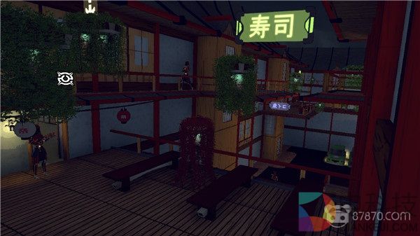 没错,《Shadow Uprising》就是这样一部游戏:一方面,我们可以看到竹林映衬下的红柱白墙庭院、穿着日式甲胄四处巡逻的足轻以及醒目的“寿司”招牌,但在另一方面,包裹在甲胄之中的并非血肉之躯而是货真价实的机械肢体,纸门背后隐藏的赫然是复杂的服务器阵列,所有的细节都向我们证明了《Shadow Uprising》的日式风格仅仅是一曾让游戏更有滋味的外壳——因此,当我们在游戏中透过墙壁观察背后巡逻的敌人时,第一印象中的“违和感”并没有那么强烈也丝毫不足为怪。
