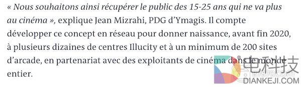 在法国《世界报》的采访中,Ymagis首席执行官让·米兹拉希(Jean Mizrahi)表示:“我们希望让那些不再去看电影的15-25岁观众愿意再次来到电影院中。”面积为30至100平方米的VR主题公园被提议作为电影院的新多样化一种策略,他希望它能够增加电影院的流量,并赢回那些离开 “黑暗房间”的观众。