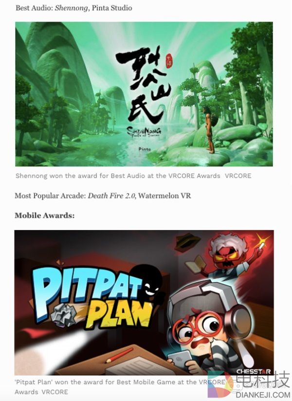 VRCORE也将在今后继续支持VR开发者,为中国与国际VR产业的全面发展构筑桥梁。在福布斯专访的最后,展示了本次大赛来自中国的获奖作品和部分内容海报。