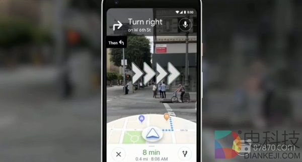 用户将能够通过摄像机看到他们面前的街道,并能使用可以指明方向和距离的AR箭头。地图视图在导航页面的正下方,而AR箭头在上方,如此一来,用户就可以检查两者显示出的内容是否匹配。