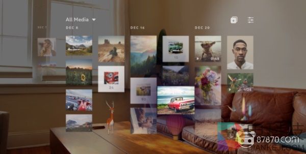 Spatial AR主打两大功能,一是远程面对面虚拟会议,二是可投射在房间中的“虚拟桌面”,并能拖拽相关对象到桌面中。