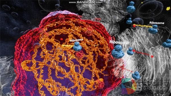 我们离细胞越来越近,最终突破细胞膜,进入到了细胞中。解说继续说到,细胞膜的基本功能是保护细胞免受其周围环境的影响。被细胞膜封闭的是细胞质,它由果冻状液体和围绕细胞核的其他结构组成。细胞核是包含细胞基因的结构,同时也被核膜包围。