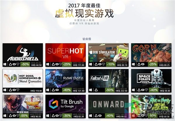 来,让我们和2017年的“铂金级SteamVR游戏”做个对比: