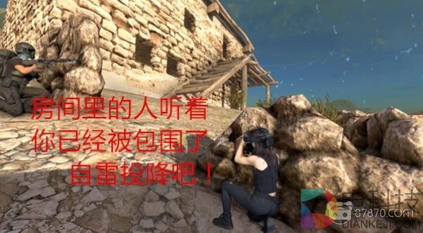 决赛圈来临时,喜欢苟的玩家可以找一些掩体真正的蹲下或是趴下匍匐前进,做一个安静的幻影坦克。它不同于其他VR游戏是按手柄按键来蹲或是趴着,而是需要玩家真实的蹲或趴来实现游戏内的蹲走和匍匐,大大的增加了游戏的可玩性。这时候就是考验你心里素质和过硬的枪法了,最后厮杀的紧张感让心跳不自觉的加速,走位+枪法淘汰最后一个对手你就是全场胜利者!