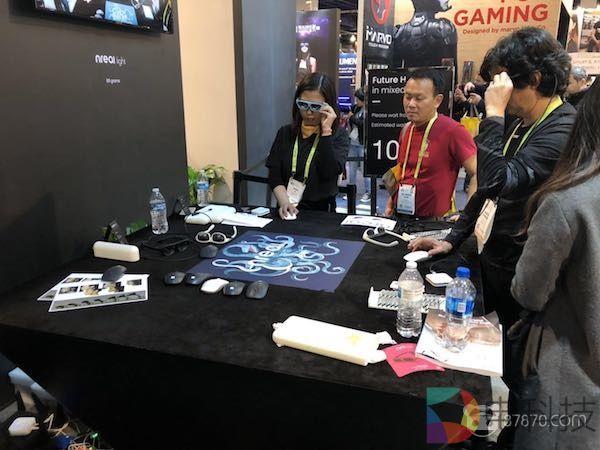 Ximmerse是联想Mirage AR的技术供应商,这次CES上他们展示的依然是连手机使用的AR眼镜。他们产品的特点在于,使用眼镜+不同的手柄,从而实现出不同的效果。就像Mirage星战的控制器是一把光剑,他们还展示了一个蘑菇状的控制器,在AR中看起来就像是一个手持的地球仪。