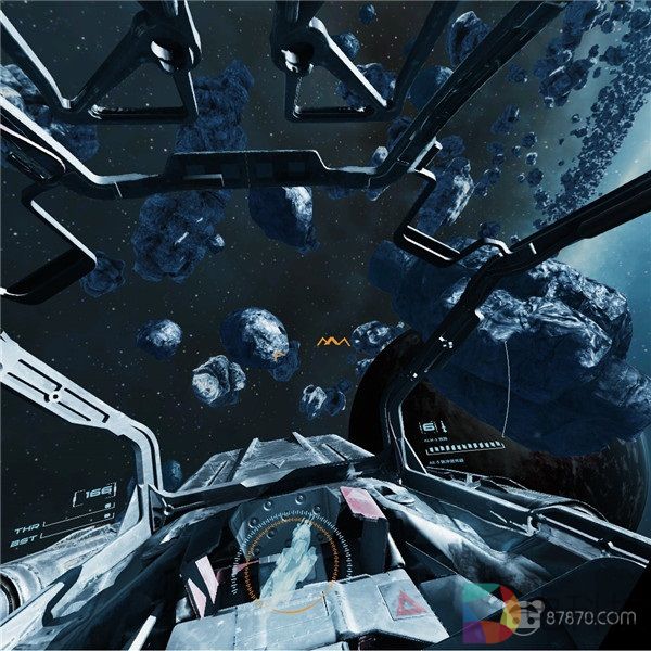 尽管《末境》是一款主打“简明易懂”的VR游戏,但这并不意味着在画面音效这些攸关体验的环节上会缩水——事实上,这部作品的画面完全可以配得上“惊艳”这种形容(以VR内容的标准来看),从遥远的朦胧星云,到中景的小行星带,再到近景的飞船机舱前盖,眼前的所有一切,在细节刻画方面做得都是恰到好处。