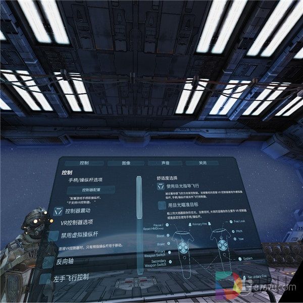 在之前的《不花钱一样玩正版!五大免费VR游戏推荐》一文中,在介绍到排名No.1的DCS World时,我们看到的是上面这段说明。显而易见,这种“专业”的设计风格固然可以让狂热玩家体验到前所未见的沉浸投入感,但对于新手上路的一般玩家来说,除了早早把人吓退之外,这种系统几乎没有任何值得称道的亮点——显然,《末境》的制作组对此心知肚明,因此在最基本的“操作”设计上,这款游戏没有给我们留下任何难啃的骨头: