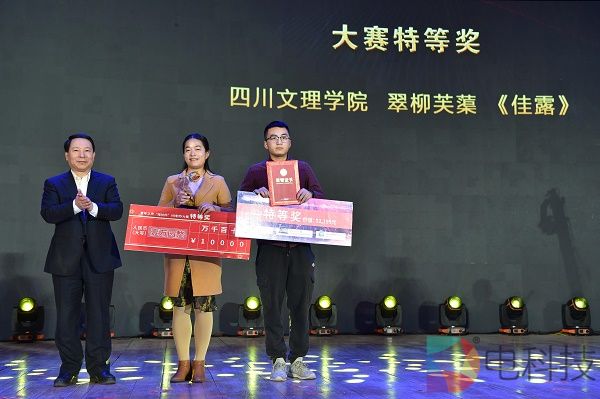 颁奖环节的最后大奖—总决赛特等奖由潍坊市经信委马中平主任和中国青年网总经理金锐共同揭晓,获得本项大奖的是来自四川文理学院的VR视频作品《佳露》。获奖团队获得价值52199元的VR视频制作系统一套,以及10000元现金奖励。