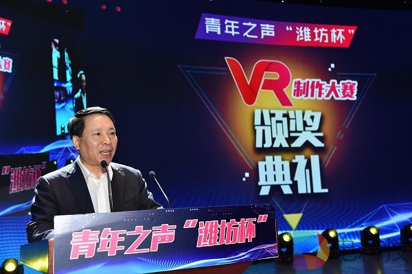 刘树亮同志代表潍坊市政府为此次颁奖典礼致辞。刘主席首先向参会的各界来宾表示欢迎。随后他向大家介绍了潍坊市的发展情况以及有关VR产业发展的政府规划等内容。