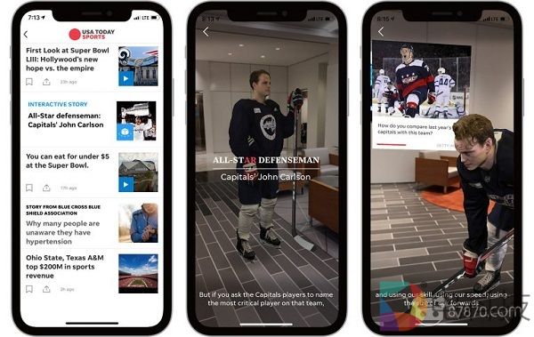 《今日美国》为其应用《USA TODAY》添加了一系列AR功能,允许用户直接在应用程序内体验一系列交互式AR体验,从而为用户带来更丰富的新闻内容。