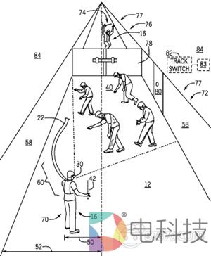 专利中描绘了这套系统入口,用户可以进入轨道并将VR头显接入到轨道中。