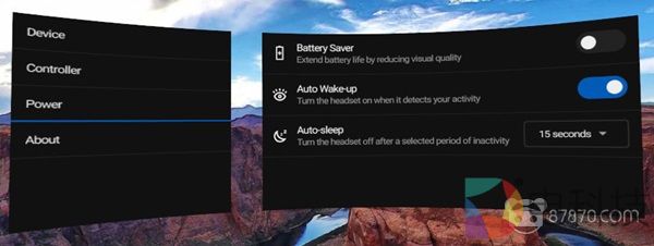 电源设置可以切换电池至省电模式(去年年底添加),以及是否希望头显在开机时自动打开。用户还可以设置头显在被取下后需要等待多长时间才能进入睡眠状态。