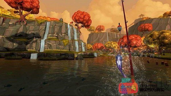 第二个例子来自另外一款我非常喜欢的移动VR游戏《轻松钓鱼(Bait!)》,这款游戏同样来自Oculus Go以及小米VR一体机平台。其核心玩法也非常简单,那就是钓鱼,当我通过不同的钓竿解锁不同场景钓到不同鱼类时,这种成就感同样是爆棚的。我个人认为这款游戏的玩法用3DoF就足以实现,无论是甩杆还是收杆,一个简单的3DoF手柄都足以完成所有操作,那么诸如此类的游戏就完全没有必要采用6DoF来实现。