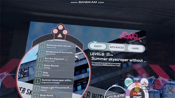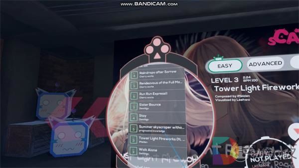 虽然《Beat Saber》的最近更新中加入了偏韩系的流行音乐,但主要音乐风格还是偏欧美电子音乐。而《sCATter》的风格则涉猎更广,有日系流行音乐,也有节奏感很强的电子音乐,同时还兼顾了欧美玩家的口味。