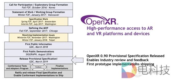 OpenXR规范与应用程序编程接口今天终于首次公布。Open XR 0.90临时规范提供了一个标准虚拟世界与拥有追踪、渲染和显示功能的移动设备之间的接口。Khronos Group发布的这项标准旨在获得开发者以及行业反馈,已经被许多在AR和VR领域投入大量资源的公司所支持。