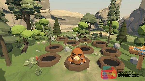 在游戏的Demo场景中,体验者可以轻松使用眼神快速击打冒出地洞的老鼠,整个交互控制过程很自然,基本上感觉不到延迟,游戏感更强。
