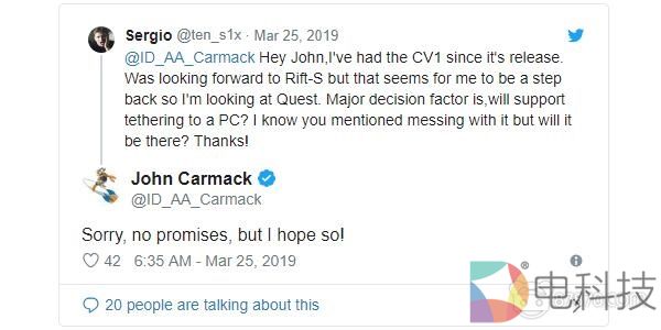 约翰卡·马克回应Quest能否连接PC:不做承诺但希望可以