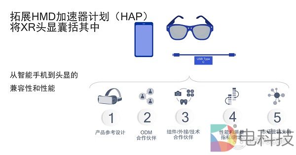 郭鹏:我想再补充的是,Qualcomm的扩展现实头显(XR Viewers)在以下几个方面区别于以前的接手机或者接眼镜盒子的头显:在硬件方面,它可通过USB Type-C的统一接口实现DisplayPort(DP)输出;在软件方面,Qualcomm的VR、XR的SDK可以兼容更多形态的手机,这是一个更开放、兼容性更高的标准。此外,Qualcomm的XR头显会支持更多未曾有过的功能,例如以前的头显和智能手机的算力都无法支持的“inside-out”六自由度(6DoF)追踪,现在我们用手机的算力就可以实现6DoF的算法,这和以前的头显有很大的不同。