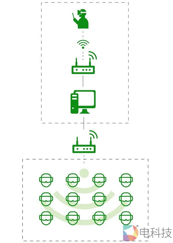 该方案分为控制端与受控端两个角色。受控端由各自独立的 PC、路由器、AR/VR 一体机组成完整的基础 NRR 整套配置,各独立PC汇聚至同一交换机,与控制端 PAD 组建局域网。控制端设备安装有PC中控软件,预装受控端需要控制的程序,并配置好路径,实现对受控PC端的控制。该方案目前已面向全球用户开始出货。