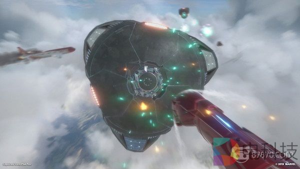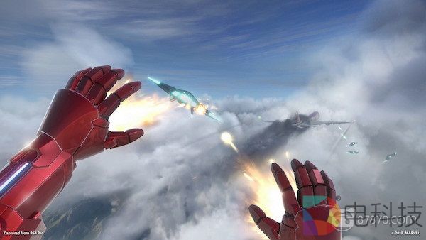 当你玩游戏时,你看到我们真正将钢铁侠作为角色把VR的优势表现的淋漓尽致。你会佩戴头盔,这是HUD(显示器);你有推进器,它是PlayStation Move控制器。你可以用这些设备飞行和射击。