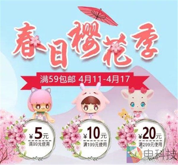 为了回馈大家的厚爱,4月11日起,CJoy天猫旗舰店隆重推出春日樱花季大促活动,进店就有优惠券满减——满99减5!满199减10!满299减20!