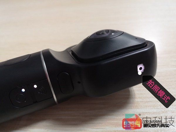 拍摄照片:在照片模式指示灯亮起时,选择360模式或180模式进行照片拍摄(通过短按切换键进行切换)。短按拍摄键,设备发出一声提示音,代表拍照完成。