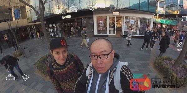 介绍完主要功能之后,我们来实际体验一下VUZE XR的拍摄效果。为了提升本次拍摄的颜值,我请来了一位帅哥——我的好哥们火叔,而我们拍摄的地点就在北京著名的潮流圣地三里屯。接下来,我们分别在室外与室内两种环境下进行拍摄,选择的拍摄质量均为最高(照片5.7K,视频5.7K 60FPS)。具体效果怎么样?直接上图!