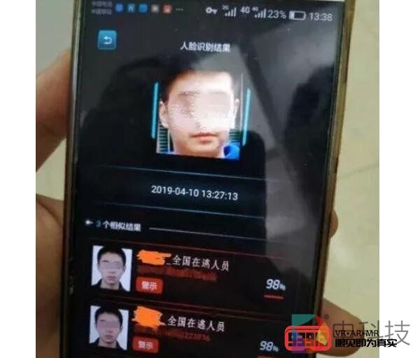 据江西省南昌市西湖区南站派出所治安民警通报:民警于2019年4月10日上午在辖区内巡逻时,随身佩戴的AR智能警务眼镜发出警报,并显示识别到前方一名路人为全国在逃人员